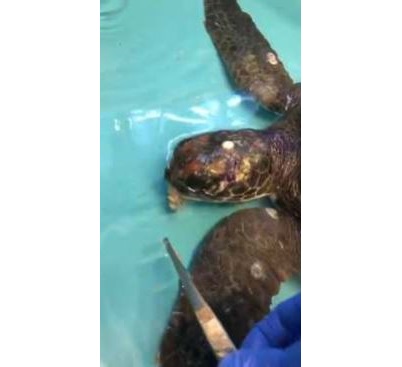 Gelukkig het sy Niel Falck, 'n bekende in natuurkundige geledere, se telefoonnomer byderhand gehad. Binne tien minute was hy daar met sy bakkie. Volgens hom was dit 'n skaars “green turtle”, 'n tipe seeskilpad wat 'n herbivoor is en wat hoofsaaklik van stukkies seewier lewe. Die personeel van die Seeskilpad Reddingsnetwerk by die NSRI stasie op Struisbaai het haar oornag gemonitor totdat die vervoer na die 2 Oseane in Kaapstad aan die deur kom klop het.