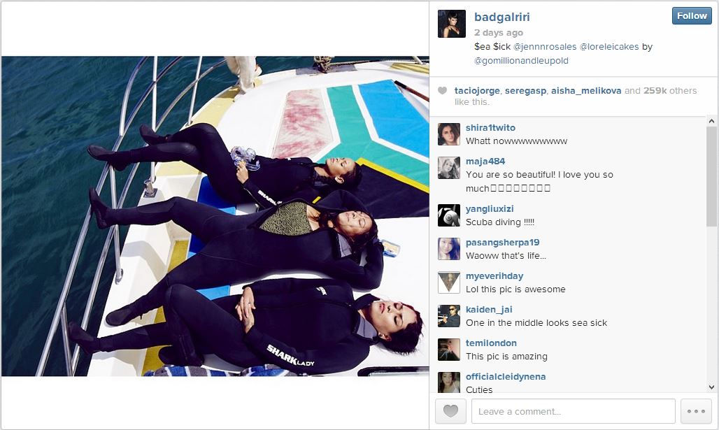 Needing a little play in between all the work, RiRi (as she is also known) went on a wildlife safari on Jo’burg and then came Shark Cage Diving in Gansbaai! Sharklady Adventures shared her photo from Instagram, adding that they had a great day out laughing and having fun with Rihanna and her family.