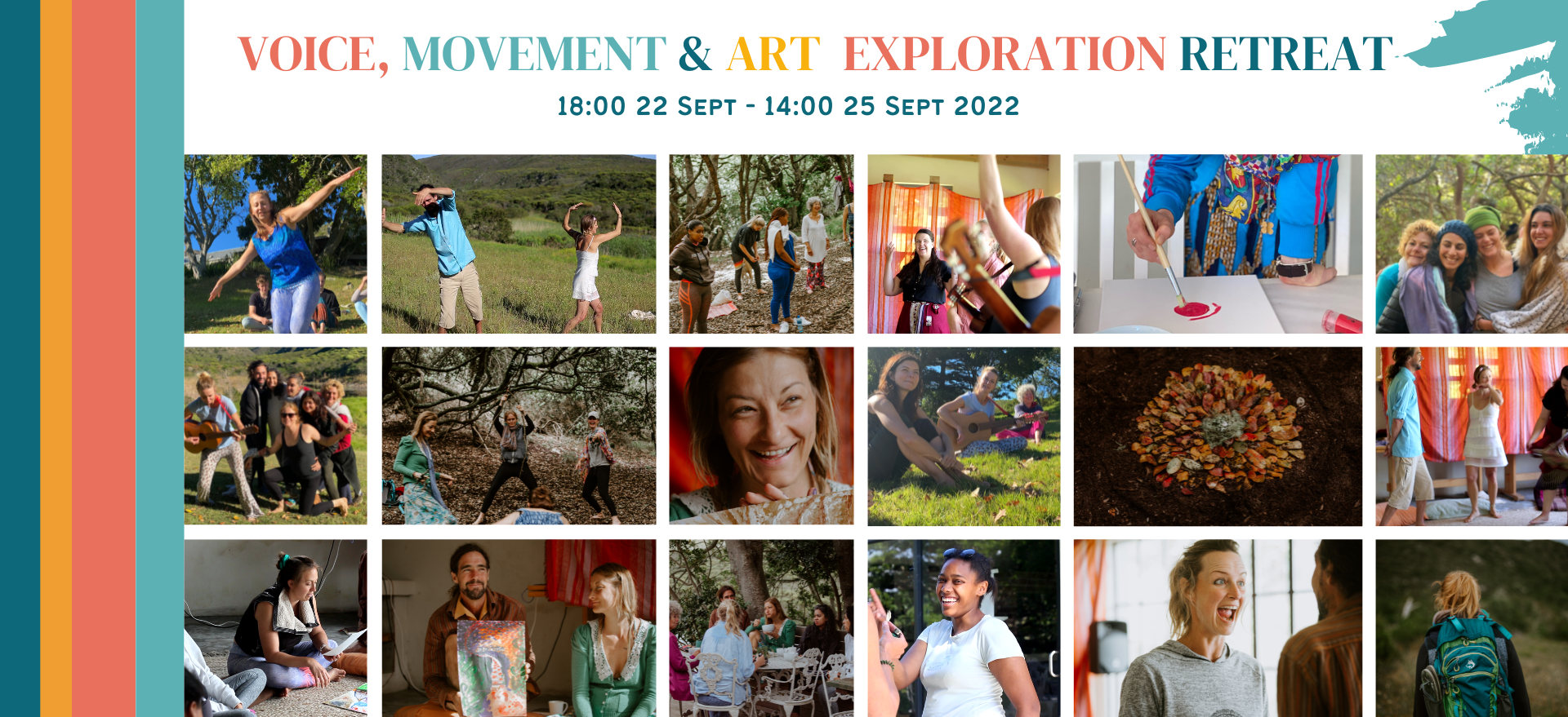 During this three-day retreat, we will let the magnificence of untouched fynbos, fresh air, delicious food and wild forests inspire us on a deep, yet playful self-inquiry journey into the mystery and power of our voice. We use song, sounding, movement and process-art to playfully uncover and remove obstacles that lie in the way of our true, spontaneous self-expression.