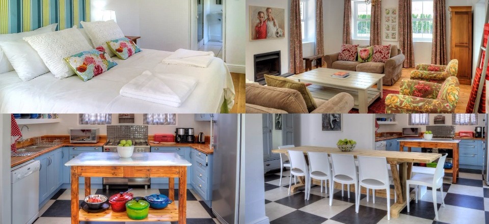 The heart of the house is certainly the tastefully decorated kitchen area. This kitchen has quirky elements enticing one to spend most of your time there. It is equipped with a 6 plate gas stove and electric oven, a fridge/freezer, washing machine, tumble dryer, coffee machine and all the other kitchen basics. A beautiful 10-seater dining table stretches across the room with windows and doors leading to the patio and garden. The parking space is sufficient, on the property and behind a gate.