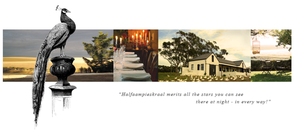 Halfaampieskraal Farm is unlike any other: nowhere ever advertised, it became a `secret` place to those in the know, for a stay on a working farm with all the emphasis on comfort, unmatchable style, good food and total bliss. Hence our now well known catchphrase: `The perfect place to do nothing at all`.